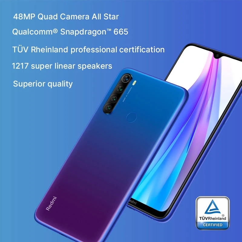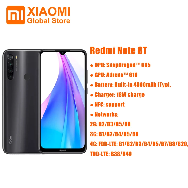 | Global Version Xiaomi Redmi Note 8T 4GB 64GB Mobile Phone Snapdragon 665 NFC 18W Quick Charging 6.3 48MP Cam 4000mAh Smartphone |